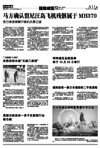 马方确认留尼汪岛飞机残骸属于MH370