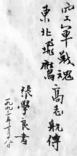 1993年7月28日,92岁的昔日少帅兼东北空军司令张学良将军为台湾出版的《高志航传》题字:“东北飞鹰,空军战魂高志航传”。