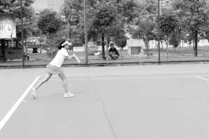8月9日,2015年周口市青少年网球锦标赛在市体育中心网球场进行收官之战。来自太康、扶沟等县(市、区)的70多位选手按年龄和性别分为6个组。经过两天的激烈比赛,6个组的冠亚军分别被刘梦娟、宋佳奇等人获得。图为比赛现场。晚报记者 王凯 摄