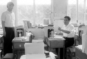 8月14日上午,郸城县委书记刘广明(右一)带领该县主抓教育的副县长、教体局长以及教育系统负责人,一起到县城一些学校当了一回“学生”,亲身体验学生座位的宽窄、寝室通风情况和床位舒适度等。