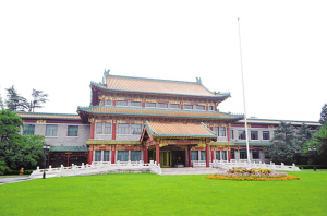 钓鱼台国宾馆坐落在北京西郊古钓鱼台风景区,景色优美,昔日曾是帝王游憩的行宫,迄今已有800多年的历史。金代(公元1115~1234年)章宗皇帝曾在这里建台垂钓,故后世有“皇帝的钓鱼台”之称。清代乾隆皇帝爱其风光旖旎,把它定为行宫。钓鱼台国宾馆总占地面积43万平方米,其中绿地25万平方米,湖面5.1万平方米,绿化覆盖率达到了74%。远处西山泉水通过玉渊潭流入院内,曲折迂回于亭台楼阁和林石木桥之间,将古钓鱼台行宫和新建的宾馆楼连成一片,古今相应,珠联璧合。身在国宾馆之中,可居可赏可游。最有故事的就是园内沿湖散落的16栋风格各异的别墅式接待楼,在楼号的编排上,特地略去一号和十三号。另外,还有两个古建筑群。钓鱼台国宾馆除了浓厚的历史文化氛围,还有高品位的艺术珍品,宾馆中珍藏及陈列的古玩、字画、家具已达数千件。