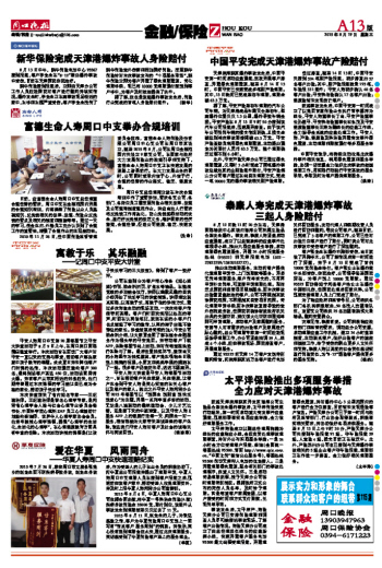 新华保险完成天津港爆炸事故人身险赔付