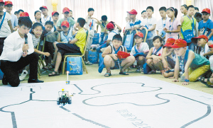 当日上午,多功能厅内座无虚席,很多小记者都是第一次接触智能机器人,对智能机器人充满了新鲜感和好奇心。在老师的讲解与演示下,他们认真聆听机器人的编程原理和制作程序,亲自动手,协同操作,全神贯注的双眸里闪动着求知的光芒。在观摩智能四轮警车、悬崖回头、光控三轮车、倒水服务机器人、高级灭火机器人的过程中,小记者逐渐感悟到了智能科技给生活带来的好处,粗略地了解了机器人的发展历史。