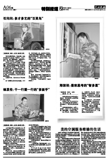 石闪闪的歌声美妙、形象优雅,被战友们称为多才多艺的“百灵鸟”。作为一名文艺兵,除了唱歌跳舞外,她通过努力学习,现在已经成为一名优秀主持人。