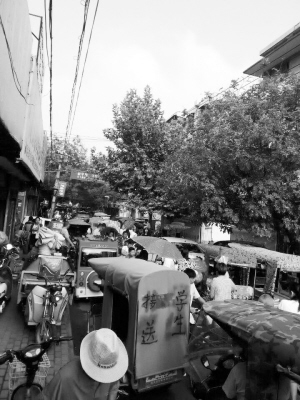 新闻路为何会如此拥堵呢?首先,接送孩子的家长集中在同一时段“蜂拥”到新闻路,加之他们的电动车、私家车随意停放,这是造成道路拥堵的最主要原因。其次,周口市实验幼儿园门前长约300米的新闻路上,商店林立,且很多商店出店经营。再次,新闻路周边居民为图方便,把私家车停放到了这条狭窄的路上,占据半边道路。最后,新闻路上搭建的简易房占据了一部分路面,部分流动商贩摆摊经营也使得道路变得更加拥堵。