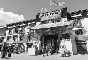 拉萨八廓街上清政府驻藏大臣衙门旧址门前装饰一新(9月7日摄)。