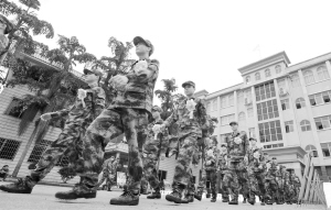 9月9日,在广西柳州市融安县人民武装部,新战士列队准备赴军营。