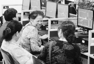 9月16日,股民在江西九江市开发区一证券营业部关注股市行情。