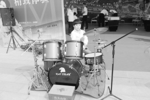 这位小鼓手名叫马祥泰,今年11岁,练习架子鼓才1年多。“孩子开始接触的是葫芦丝和萨克斯,后来喜欢上了架子鼓。”马祥泰的父亲告诉记者。