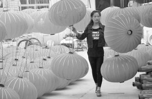 9月19日,在山西省稷山县杨赵村,工人在晾晒红灯笼。国庆临近,山西灯笼产销集散地运城市稷山县杨赵村灯笼产业园区的企业“开足马力”为全国各地客户赶制红灯笼,喜迎国庆佳节。
