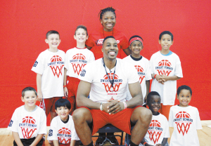 当地时间9月19日,霍华德(中)在训练营中与学生们合影。当日,NBA休斯敦火箭队球员霍华德在美国休斯敦市举办篮球训练营,近300名一年级至十二年级的学生参加,霍华德亲自参与并同孩子们一起训练。新华社发
