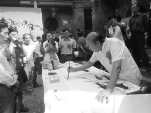 当日,来自我省各地的书画名家如约相聚在商水县叶氏庄园。欣赏过叶氏庄园,书画家们纷纷亮出各自绝活。在两个多小时的时间里,他们创作出多幅书画作品。
