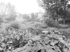 周口二中西门附近长满荒草的坑