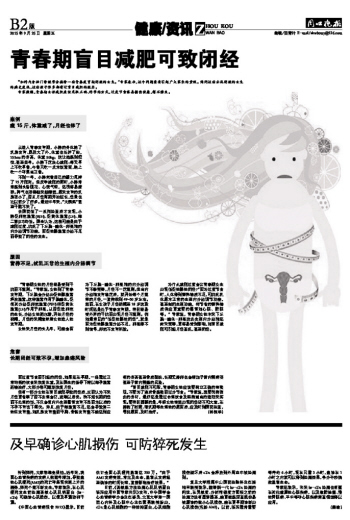 青春期盲目减肥可致闭经