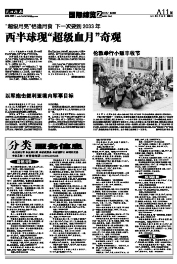 此次月全食“血月”是极为罕见的“连环四月食”最后一环。所谓“连环四月食”是指连续四次发生、每次相隔6个满月的月全食,前三次分别发生在2014年4月15日、10月8日和2015年4月4日。