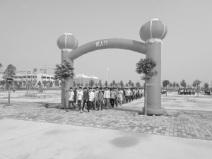9月25日,团市委、市文明办、市教育局联合举办以“与人生对话——我的中国梦”为主题的周口市18岁成人仪式。图为周口联营电脑学校18岁学生通过成人门。 晚报记者 张燕 摄