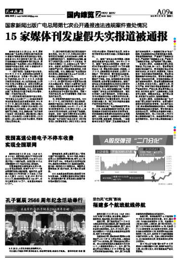 15家媒体刊发虚假失实报道被通报