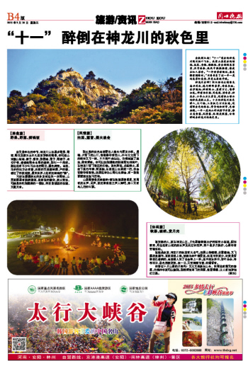 神龙川在哪?浙江临安太湖源生态示范区,境内群峰叠翠、清泉长流、金沙遍地、神药满山、崖壁万丈、苍翠如龙。辟有怡乐园、卧龙溪、清凉界、神农台、小华山五大景区,还有依山傍水的神农度假山庄。十月的神龙川秋色醉人,火叶桃、三角枫已万川红遍,还有那金色的银杏、常青的松树等,色彩斑斓。一年一度的山野风情节开幕,推出美食篇、风情篇、休闲度假篇,让你醉倒在神龙川的秋色里。