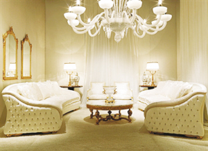 威严的女神让人远远仰视,而轻盈舞动的女神像精灵,让人忍不住想去追逐她的脚步。浅色地毯搭配白色柔软的沙发,运用纯手工制作的复杂工艺缔造经典,利用轻盈缥缈的羽毛靠包打造时尚,在时光流转间,连豪华的吊灯在这个空间也变得柔和起来。