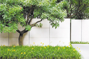 想营造一个具有古典园林风格的庭院,我们可选择梅、兰、竹、菊和代表金玉满堂、富贵荣华的玉兰、桂花;挺拔的竹子、苍劲的罗汉松、典雅的桂花与挡墙上的满月设计造型,便会形成一幅“明月松间照,清泉石上流”的袖珍山水画面及幽静闲逸的意境。