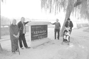 本报讯 10月12日,本报文化周口系列报道之周口八景首篇刊登的八景之一——“埠口渲渡”,引起许多热心读者的热切关注。当日,86岁的赵大娘和邻居指着刻有大渡口码头遗址字样的石碑高兴地说:“大渡口码头遗址就在俺家门口,俺小时候总看到河边停着好多船,那儿还是一个装卸货的码头嘞……”