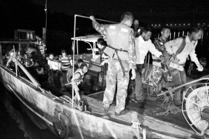 9月16日,在深圳西乡,偷渡人员在边防战士指引下陆续下船。