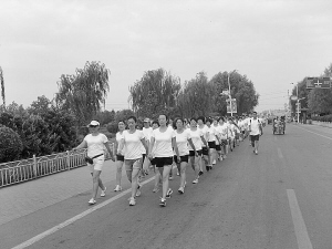随着全民健身热潮的兴起,在周口市区广场、滨河公园等地方,人们经常会看到一群人,穿着休闲服,迈开步子,甩开胳膊,进行一种便捷、有效的健身——健步走(如图),而且这种体育运动已经成为他们生活的一部分。近日,记者从市健步运动协会了解了不少会员因为参与这项运动而精神愉快、身体健康的故事。