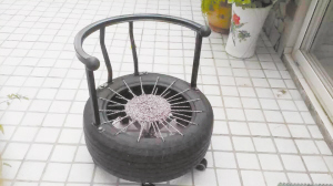 俺自己设计,与老公合作打造(老公负责焊接)的轮胎沙发,今天终于完工,以后可以美美地玩漂移了! @微友 邵素霞