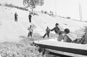 路面脏了有环卫工打扫,水面脏了谁来治理?10月14日,川汇区水利局及沿河的办事处组织开展沙颍河水面漂浮物治理行动。受多方面因素影响,沙颍河水面漂浮杂物较多,严重影响市容市貌,污染水资源。川汇区把河道及水面环境卫生管理作为城市管理的一项重要工作,纳入政府议事日程,加大资金投入,每年安排一定的预算资金用于河道及水面的环境卫生治理,要求每年至少组织两次以上集中清理行动。此次清理行动,川汇区出动5条快艇,对沙颍河中州大道桥至沙颍河大庆路桥间3.5公里水域进行全面治理,预计工期一周。图为川汇区水利局工作人员清理岸边生长的水草,将其拉至下游河滩内运走。