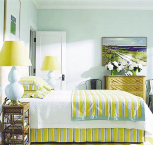 明艳又柔和的银杏黄,其实和各种蓝色都是好朋友,如果喜欢时尚亮丽的居室氛围,不妨尝试一下与宝蓝、亮蓝的搭配。如果觉得它们放在一起太过刺激,不妨尝试用白色来平衡一下。比如,黄色的布艺沙发搭宝蓝色的墙面,若加上白色的木墙裙,爱琴海岸的度假氛围一下子就出来了。而银杏黄与牛仔蓝的搭配则凸显青春活力,以落叶黄为墙壁铺色,牛仔蓝色选作沙发和窗帘的主要用色。另外,橄榄绿和天蓝色以及森林绿的细节点缀,会带来更为丰富的色彩层次,多重组合,互相吸纳互补。