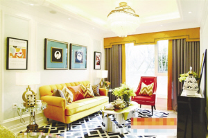在现代风格家居中,艺术家常用追求自然的黑色、黄色、绿色进行搭配,这三种颜色的搭配,既大胆自然,又精巧细致,很好地处理了协调色与强调色的比例关系,是自然又不失艺术风格的配色典范。银杏黄的布艺沙发配上草绿色的植物印花窗帘和抱枕,能够营造出一种春风拂面的视觉感受。可以用草绿色作为墙壁铺色,搭配杏黄色为主色的布艺窗帘及沙发,纯黑色与杏仁色的家具摆件配合点缀其中,整个空间色彩会更加和谐出彩。(南方)