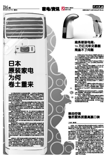 9月29日,家住淮阳县北关的王先生在《周口晚报》上看到了美的空调的促销广告,第二天美的空调专卖店一开门,他便购买了4台。但是,他刚办好手续,朋友打来电话说让趁“十一”期间到山西玩几天。由于是好朋友,王先生没有拒绝,可他刚买的空调还要及时安装,这可咋办呀?正当他一筹莫展时,美的专卖店零售顾问看出了他的担心,帮他出了个注意:王先生只要把安装装位置和要求向安装工人讲一遍,然后家里留个人,一切事就不用管了,王先生就可以放心地出去玩了。