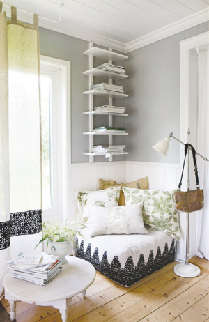 秋冬季节,为家里的台灯或落地灯更换一个灯罩,就有完全不同的感觉。将金属灯罩换成纸质、布艺或者贝壳等材质的灯罩,空间也增添了温暖的效果。添加一些蜡烛、烛台,或者摆放布艺的玩偶放在显眼的地方,也有同样的氛围。(付娟)