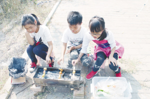 临近中午,一场由十多个小记者家庭组成的亲子烧烤Party在周口公园外的中原路东侧如火如荼进行着。一个个烧烤炉炊烟袅袅,羊肉、火腿、调和油等应有尽有。家庭之间互帮互助、互相品尝,小记者之间增进了友谊,家长之间也由陌生到熟悉,收获的是幸福和快乐。