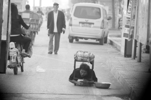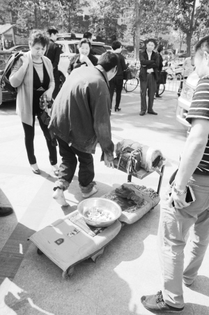 在周口中心城区,人们经常能看到行乞者的身影。他们之中,不乏真正因为生活所迫而走上街头者,亦有职业乞讨者混杂其中。日前,周口晚报记者亲眼目睹了从一辆金杯车上下来的3个人,化装成瘫痪乞丐的过程。