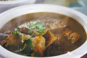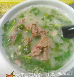 在周口,不管是干力气活的,还是文人雅士,都喜欢围到一堆儿喝羊肉汤,而石灰窑羊肉汤则是具有周口特色羊肉汤的代表。提起石灰窑羊肉汤,周口大街小巷无人不知、无人不晓。其配料很简单,除了羊肉之外,就是汤、盐、辣椒、香菜,而且调料还是自己搭配的。就这简单的几样食材,让周口人痴迷了几十年,不佩服都不行。