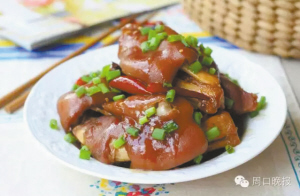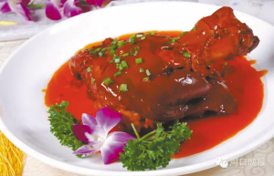 带皮烹制肥不腻,皮厚筋多胶质重。
