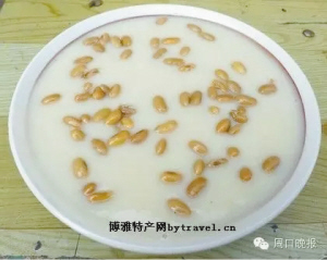 妈糊是鹿邑的特色小吃,国内独有,以地产黄豆、小米浸泡膨胀后磨碎为沫,取汁煮成。色白如乳,细腻无渣,滑润如脂,香甜爽口,不亚乳汁,故名妈糊。饮时佐以咸面黄豆。饮后碗净如洗者是上品,若不净,则必有玉米掺入,其味不佳。
