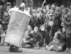 10月18日,在加拿大温哥华, 民众观看万圣节巡游表演。