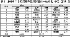 10月13日下午,中国汽车工业协会公布9月全国乘用车销售情况。数据显示, 9月汽车产销分别完成189.43万辆和202.48万辆,销量明显高于产量。1月至9月,汽车产销分别完成1709.16万辆和1705.65万辆,产量比上年同期下降0.8%,销量比上年同期增长0.3%。