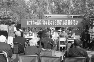 10月20日,市中心医院抽派专家到蓬莱敬老院慰问,为这里的老人逐一问诊、量血压、护理指导。通讯员 贾一佳 摄
