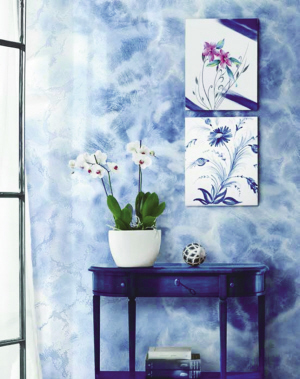 设计师可以将脑海中的种种画面,比如阴云密布的天空、浪涛翻涌的大海、鲜花盛开的山坡等自然景观,用钴蓝、绯红、深灰、黛紫等丰富的色彩,定格在墙面上,形成一幅幅美丽自然而又神秘玄奥的图案。