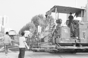 黄河西路正铺设沥青