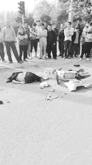 本报讯 10月21日14时16分,在淮阳106国道(羲皇大道)与育才路交叉口发生一起交通事故,一辆车身带有“治安巡逻”字样的白色面包车与一辆电动车发生碰撞,造成骑车女子王某当场死亡。