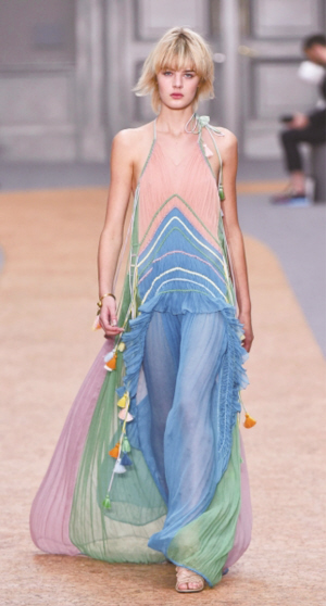 新一季的Chloé女孩懂得享受自由、释放优雅,她们用最简洁的方式表达从生活及日常所为中获得的愉悦之感。她们时刻给人新鲜感,绽放与众不同的个性色彩,用最真实的自我,拥抱每日生活。所以无论她们把自己包裹在蕾丝雪纺中还是彩虹晕染里,你总能从那些无风自动的裙摆和欢快不拒的抽绳设计里看到难得的轻快情绪,不自觉就向往了起来。