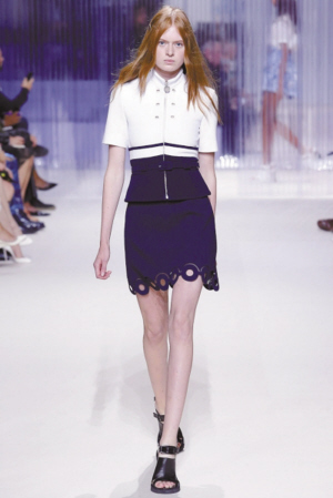 2016春夏系列将海风吹入了Carven女孩的衣橱。她动感清新,在夜幕来临之前,在日常工作服中汲取灵感,并融合了海床的元素。介于贴合剪裁和宽松版型的服装外廓,表达的是一种飘逸的优雅。反穿的外套和男性化衬衣让我们联想到了上世纪60年代的圆形切口剪裁。裙装和上衣则受到潜水衣元素的影响,联合褶皱和花边,试图打造出城市美人鱼的形象。