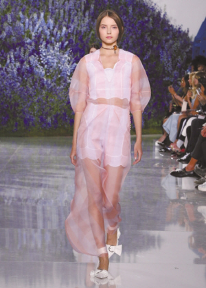 离不开花的Dior同样在优雅浪漫的路上有着不重复的尝试,相对前几季更加纯粹、简洁的Dior女郎,在曲线斜裁的透明薄纱裙的衬托下,创造出了一种与性感无关的脱俗气质。而另一方面,在富有时代感的剪裁与搭配下,极具实穿性的中性风格也不输分毫。女性化的服装和男性化的剪裁融合成全新的结构,共同实现了RafSimos口中那份“属于未来的一段掠影,一种新的纯粹且轻松的精准表达方式”。(京华)
