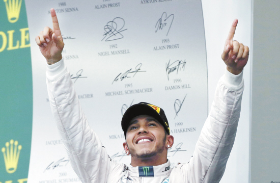 F1美国站 汉密尔顿夺冠 加冕“三冠王” 据新华社电 在当地时间10月25日夺得了F1美国站的冠军之后,汉密尔顿已经获得了足够积分,这使得他成功卫冕本赛季的车手总冠军,成就“三冠王”称号。 效力于梅赛德斯车队的汉密尔顿正赛排在第二位出发,不过他在比赛的开始阶段就成功占据第一位。在经过一系列的意外之后,他最终战胜了队友罗斯伯格拿到了美国站的冠军