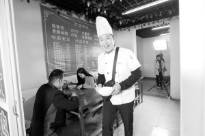 当天上午,在周口市区建新路一家餐馆,微电影《父与子》没有举行开机仪式,直接开拍(如图)。据介绍,微电影讲述了10岁男孩郝小志在照顾双目失明又多病的父亲郝灿的情况下,学习成绩优异。为让父亲看病和吃上营养饭,郝小志省吃俭用。