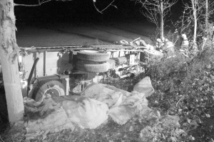 10月26日凌晨4时许,一辆周口牌照的大货车在周项路上自西向东行驶过程中,突然冲进路边河沟。附近群众发现后及时报警,货车司机有惊无险。交警提醒广大驾驶员,疲劳驾驶最容易引发交通事故,驾驶员驾驶车辆超过4个小时就应停车休息。晚报记者 朱东一 摄 线索提供 李凤召